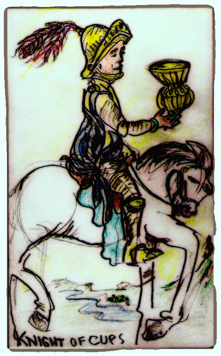 Knight of Cups, Slightlyshopped; coloredpencil on index cards; 2005-2009