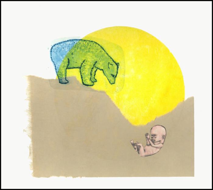 monoprint made using etching, inkjet and tradigital, chine colle, plus wood offset.