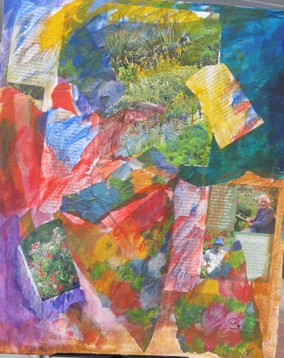 Collage on canvas board, acrylic paint