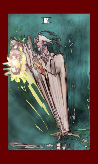 Clearly, I've never had any formal art instruction. I drew the originals (some shown after these) in colored pencil on 3x5 index cards. Then I scanned and SmartBlurred them in Pho'sho'. Then last yearI went and re- 'shopped the Higher Arcana...