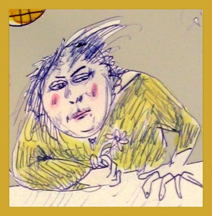 YellowShirtFace; pen, ink, watercolor; Oct 2007
